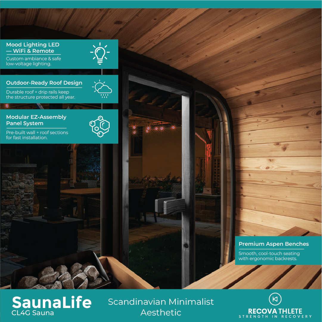 The SaunaLife CL4G 3-Person Cube-Series Outdoor Sauna Kit blends modern Scandinavian aesthetics with traditional wellness craftsmanship. Its minimalist cube shape, panoramic glass front, and ergonomic layout turn your backyard into a daily sanctuary for calm, clarity, and connection.
