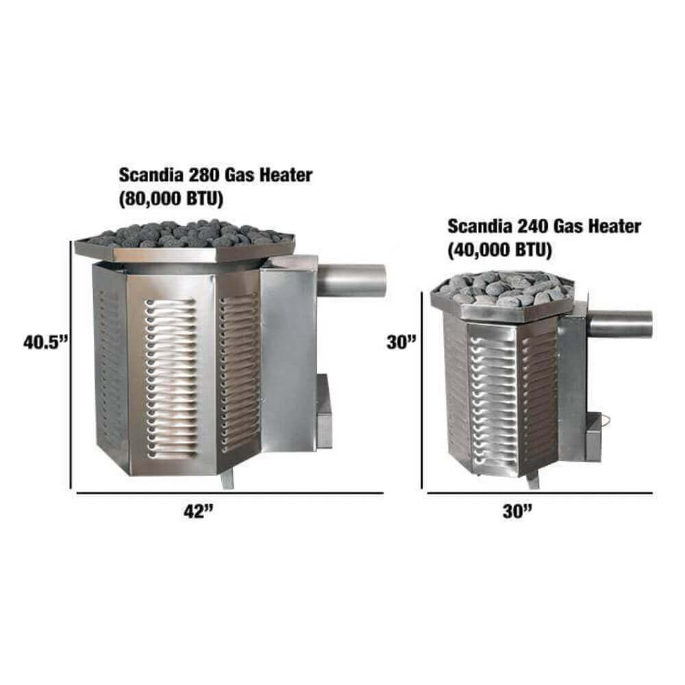Scandia 80K BTU gas sauna heater is suitable for saunas up to 1680 cubic feet.